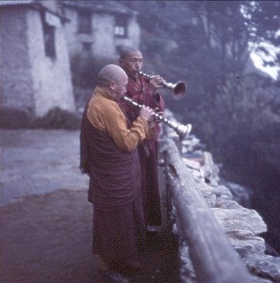 Buddhist Monks call for the Morning Prayer: Thame Gompa in