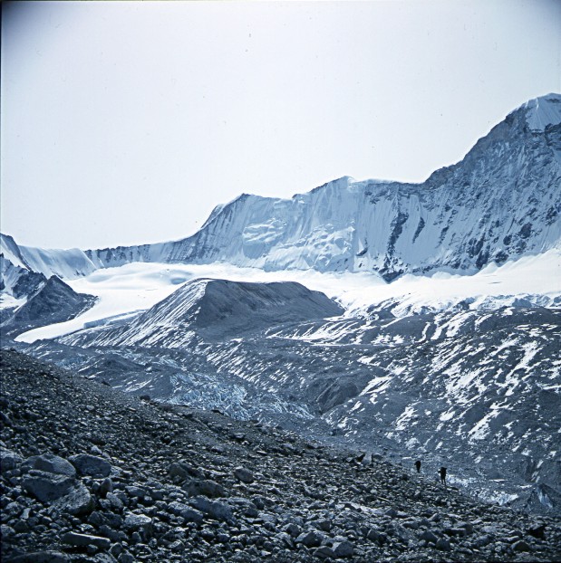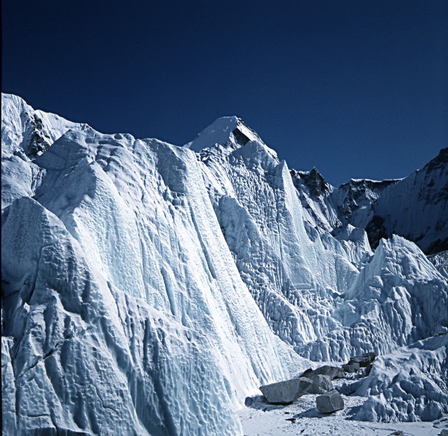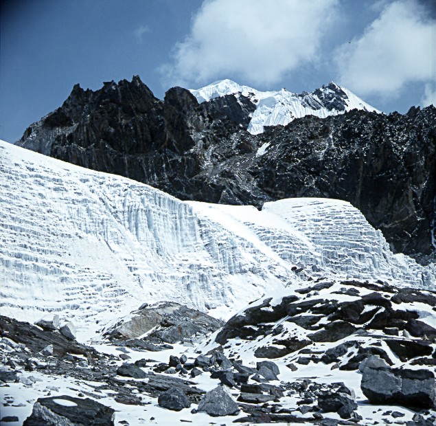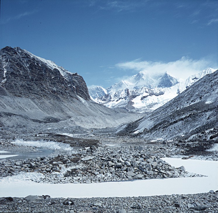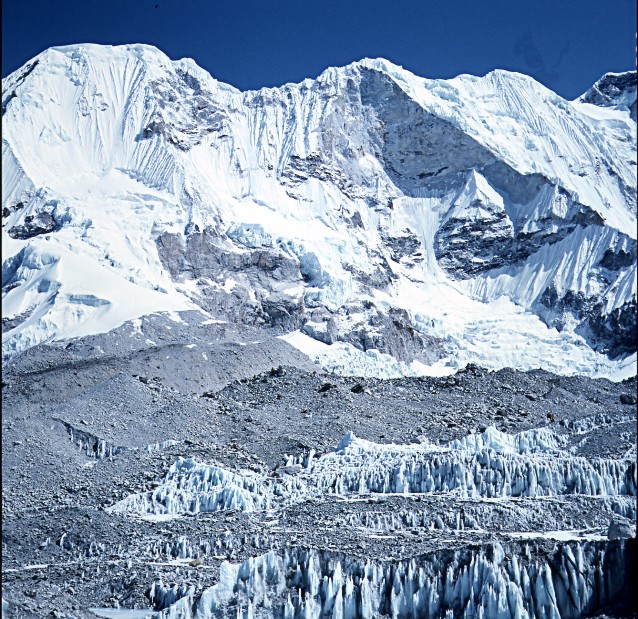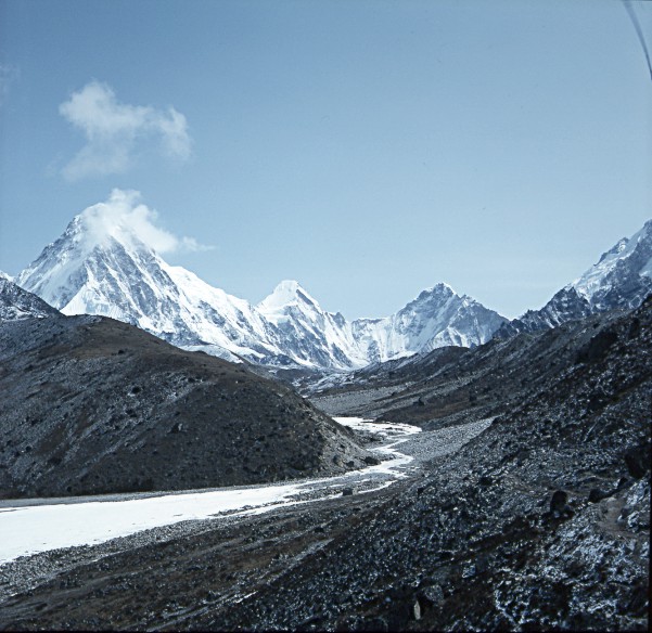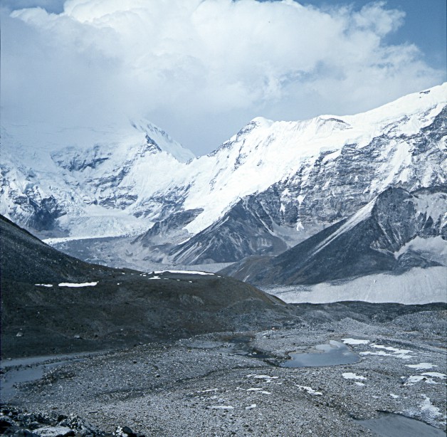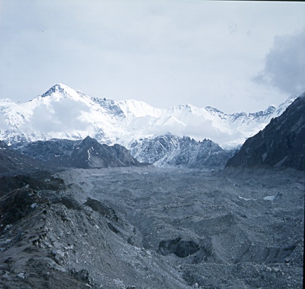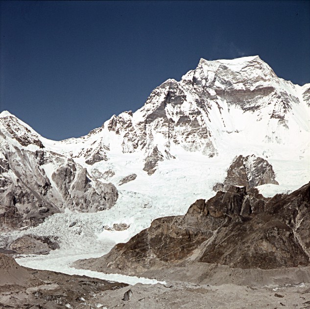 Glacier coming from the Cho Oyu 8 153 m and the Gyachung Kang 7 922 m in the Background