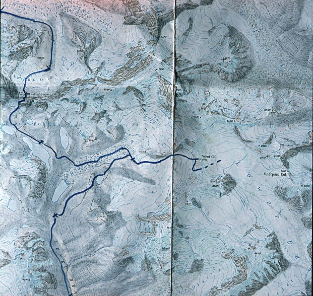 The next morning Bruce Campbell-Watt was too weak to get up and to continue the climb to the West Col. We feared that he suffered from "Acute High Altitude Mountain Sickness". We decided to have a rest day for him. In the mean time we could explore the most suitable route to climb the West Col.