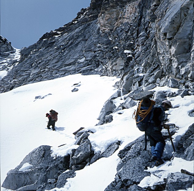 first steps to cross the frightening Baruntse Wall over the Amphu Laptsa: Our youngest