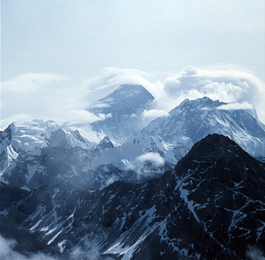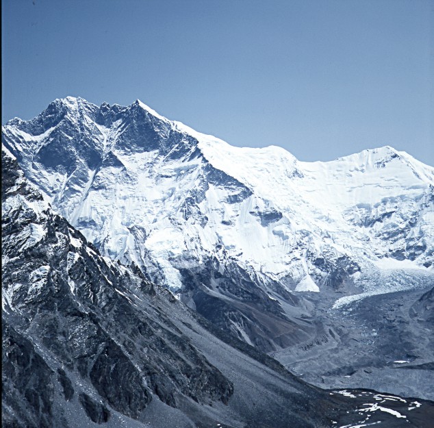 Nuptse 7 879 m and Lhotse 8 501 m on the right Hand Side