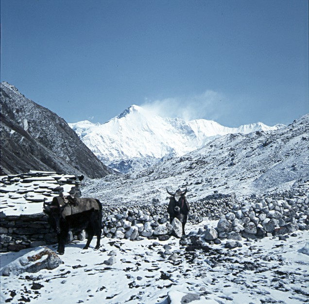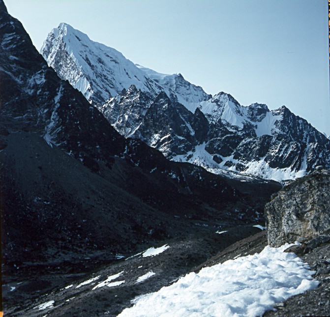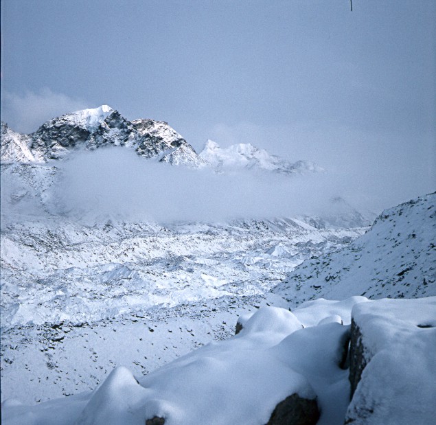 Gokyo: Over Night it has started snowing (April 1982): View to