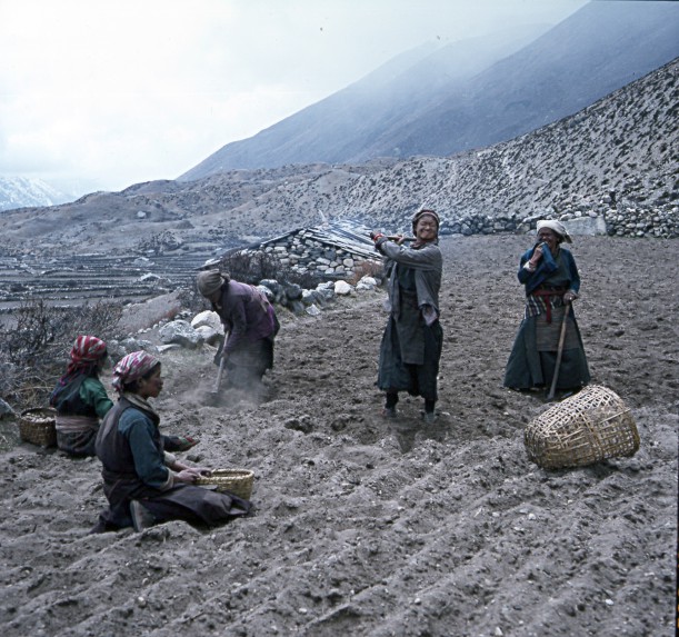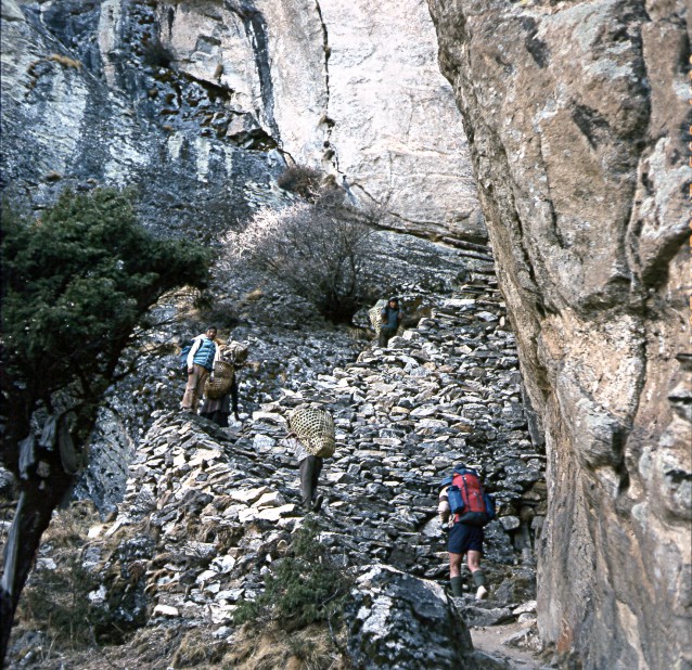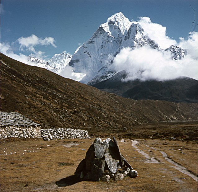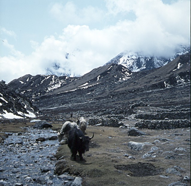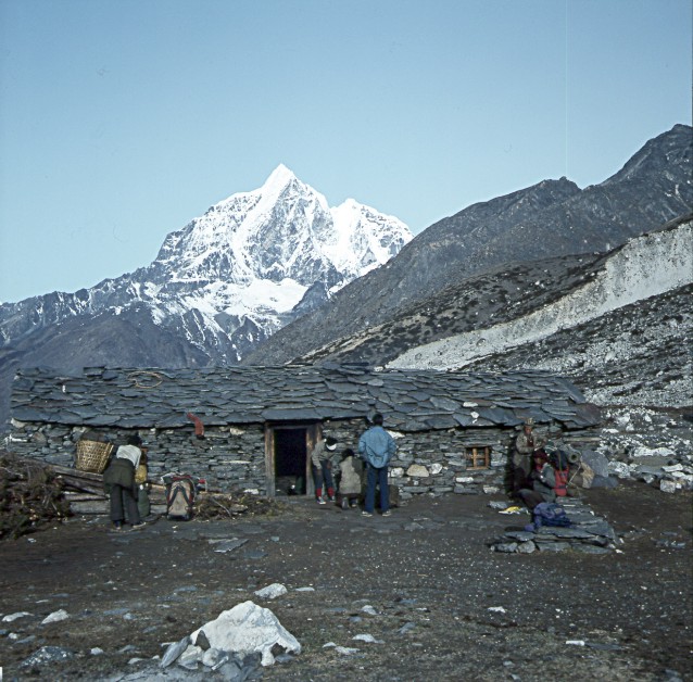 We were walking from the hair rising air strip at Lukla in the Dudh Kosi valley via Namche Bazar to Khumjung (see Photo Documentation: Rolwaling-Khumbu'1980). From there we followed on the northern side the Imja Khola valley. Near the Sherpa village of Phortse (Tschörten at 3 973 m) we turned to the north into the Gokyo valley in direction Cho Oyu 8 153 m.