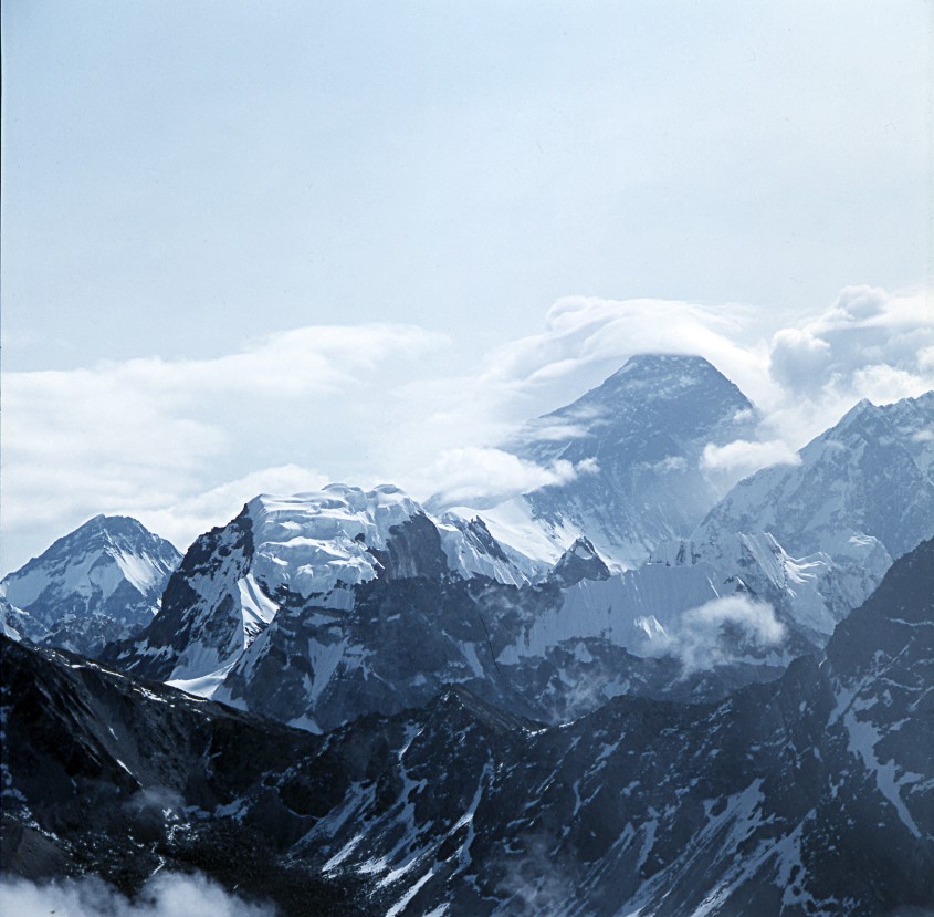North to the Lhotse Range, where behind Lhotse, Mount Everest made now its Appearance and