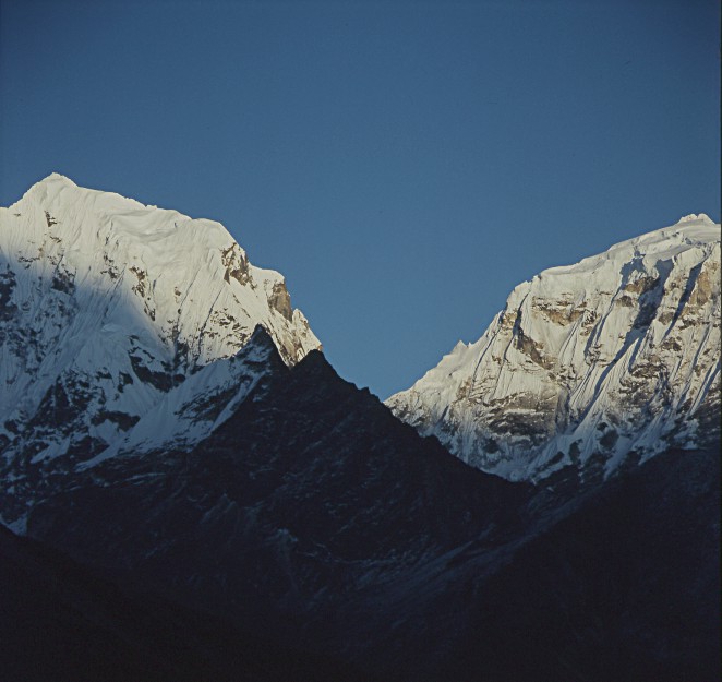 Right: Pumori 7 145 m; Lingtren 6 697 m and Khumbutse 6 640m: Right Photo shows the
