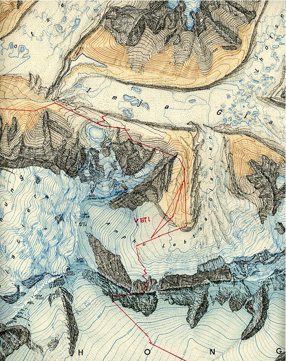 met an Abominable Snowman (Yetih) on the Baruntse Glacier and that he would rather cross