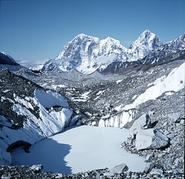 The Khumbu Glacier: View to the North: Left Photo: From Left to