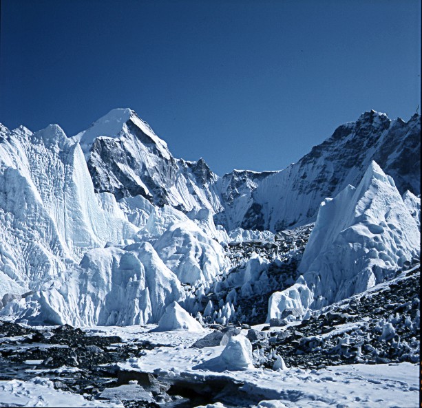 The Descent via the Cho La Col Glacier into the Khumbu Glacier