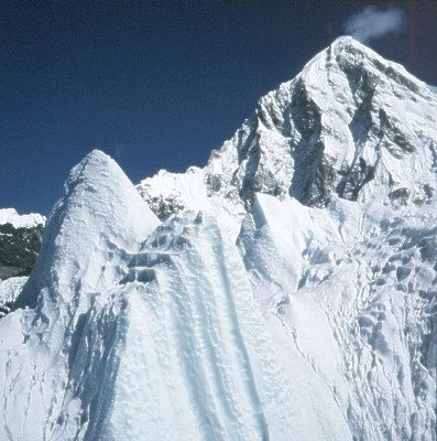 pa, nur wenige Schritte entfernt, bleibt von der Lawine verschont. Cho Oyu, die "Göttin des Türkis", hat wieder ihre Opfer gefordert. Für die Bergsteiger Deutschlands und Österreichs ist eine nicht zu schließende Lücke entstanden. Eine Tschörte zum Andenken an Reinhard Karl steht in Gokyo.Neue Begegnungen mit Bergsteigern aus einer anderen Welt ergeben sich, als ich mit Ang Tschumbi zum Everest Basislager der "Ersten Sowjetischen Expedition zum Everest '82" aufsteige. Der Aufstieg von Gorak Shep durch die verwirrende Eislandschaft des Khumbu Gletschers beschert uns bei herrlichstem Vormonsunwetter ein großartiges, nicht sehr anstrengendes und kaum gefährlich zu nennendes Himalayaerlebnis. Das vergleichsweise angenehme Steigen unter Riesenseracs hindurch und an durchsichtigen, blau-grün schimmernden Eisbergen und tausendfachem Büßer eis vorbei zum Fuß des Khumbu Eisbruches, der immer noch das größte Hindernis bei einer jeden Everestexpedition darstellt, ruft Begeisterung hervor und läßt viele Strapazen der letzten Wochen vergessen.
