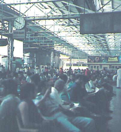 Am Bahnhof ist das Durcheinander noch größer als am Flughafen. Selbst erfahrene Reisende fühlen sich geradezu erschlagen. In dem üblichen und völlig überwältigenden Menschengewimmel drängt und kämpft sich jeder rücksichtslos durch. Disziplin und ein wenig Rücksicht auf den Nächsten gibt es in diesem Lande nicht. Die feucht-heiße Luft wird von zahlreichen Ventilatoren umhergekreist. Wenigstens dieses Überbleibsel aus der Zeit der "Raj", der "guten, alten britischen Kolonialzeit", funktioniert noch.