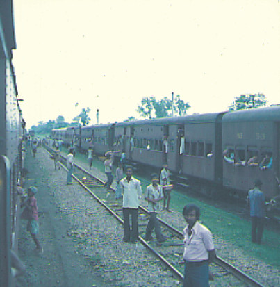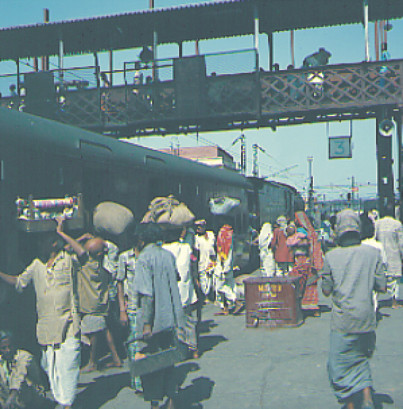 Die Züge sind ständig so überfüllt, daß man den Eindruck gewinnt, ganz Indien sei gleichzeitig unterwegs. Wer in diesem Lande eigentlich produktiv tätig ist, ist oft nicht so ganz ersichtlich. Nachts sollte man die Abteile abriegeln, da Züge auf offener Strecke immer wieder von bewaffneten Banditen überfallen werden. Man sollte auch besser, selbst bei der ständigen, schweißtreibenden Hitze, die Fenster schließen, um zu vermeiden, daß durch die massiven Fenstergitter ein Spieß hindurch kommt, um eines der Gepäckstücke hinauszulangen. Daß man dabei eventuell auch körperlich zu Schaden kommen könnte, scheint niemanden aufzuregen. In Indien hat man eine andere Einstellung zum menschlichen Leben! Der Zusammenbruch von Recht und Ordnung in ganzen Provinzen und die allgemeine Unsicherheit sind Aspekte des indischen Lebens, die von Jahr zu Jahr schlimmer werden. Schmutz und menschliches Elend in kaum erträglicher Konzentration und die Hitze, die selbst nachts herrscht, dies alles trägt dazu bei, daß die Sehnsucht nach den Eisriesen des Himalaya am nördlichen Horizont immer größer wird. Eine Eisenbahnfahrt in Indien kann auch ein inhärenter Teil einer Himalaya Expedition sein: Sie unterstützt die geistige Akklimatisierung! Wer Indien überlebt hat, ist geistig gut für den Himalaya ausgerüstet. Es kann einen nichts mehr erschüttern! Aus dieser Sicht - und nicht nur aus Sparsamkeitsgründen - ist eine Indiendurchquerung auf dem Landwege sehr zu empfehlen.