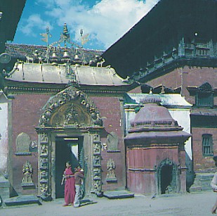 In jener Zeit durchlief der Buddhismus, wohl als Gegengewicht gegen den neu auflebenden Shivakult in Indien, verschiedene Phasen in Nepal. Die ersten Mönche der buddhistischen Religion waren Anhänger der Glaubensrichtung des Hinayana, des "Kleinen Fahrzeuges", der puritanisch-strengen Urform des Buddhismus, die auf dem egoistischen Prinzip der Selbsterlösung beruhte. Die Hinayana- Glaubensrichtung entwickelte sich später zum Mahayana, dem "Großen Fahrzeug", der liberalen, auf dem Erlösungsprinzip durch Dritte beruhenden, "nördlichen" Richtung des Buddhismus. Aus dem Mahayana- Buddhismus, der außer den fünf Meditations-Buddhas auch noch viele Bodhisattvas und andere göttliche Wesen kennt, entfaltete sich durch Hinzunahme von Elementen der alten tibetischen Naturreligionen und gewisser tantrischer Zauberriten, das Vajrayana, das "Diamantene Fahrzeug". Diese Glaubensrichtung wird auch tibetischer Buddhismus oder Lamaismus genannt, obwohl der Gott-König Tibets, der gegenwärtige 14. Dalai Lama, Tenzing Gyatso, den letzten Begriff ablehnt. Anbetung weiblicher Gottheiten und Aufnahme gewisser erotischer Riten prägen den Charakter dieser Form des Buddhismus. Die vielen "erotischen" Darstellungen an Nepals Holztempeln sind Ausdruck dieses Glaubens. Der Buddhismus wurde durch diese Entwicklungen weitgehend seines ursprünglichen Ideengehaltes beraubt.