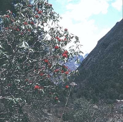 Rhododendron in den Bergurwäldern Sikkims: Zwischen Bakhim,