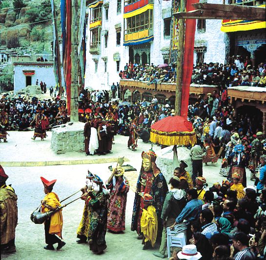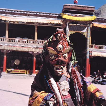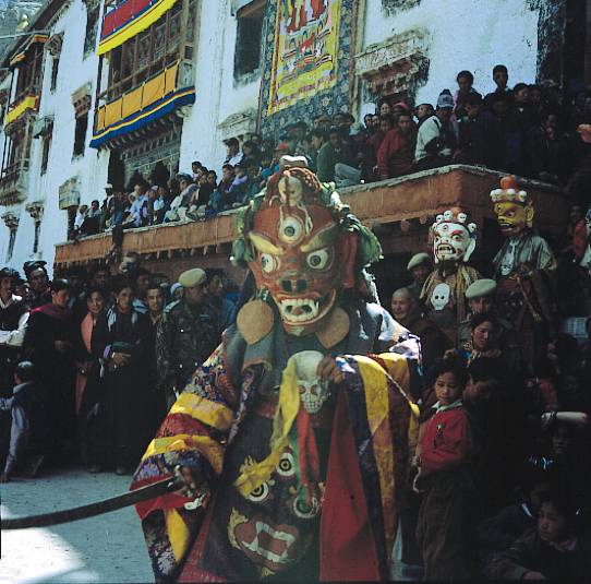 Cham-Tänze (Maskentänze) in der Hemis-Gompa, Ladakh, 1999