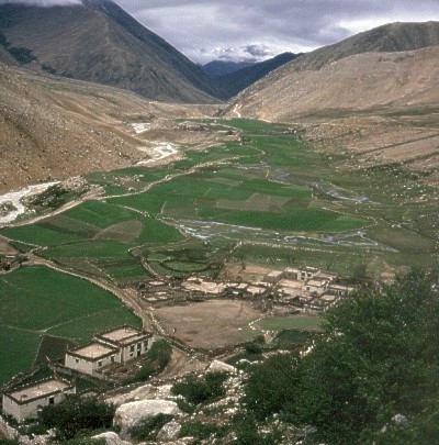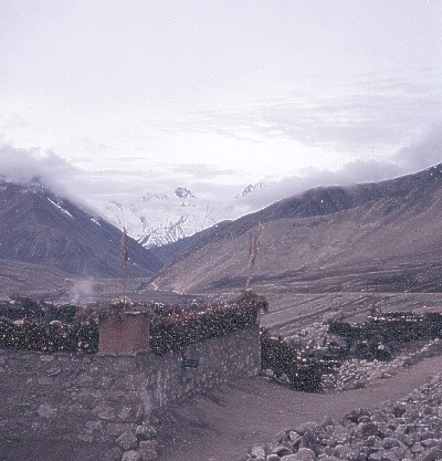 Plötzlich wird der Frieden dieses herrlichen, gerade angebrochenen Tages durch einen tiefen grollenden Ton angefüllt, der aus dem Himmel zu kommen scheint. Dieser Urlaut der langen alphornähnlichen Dungchen, der Lama-Hörner, beginnt als brummender Bass, einem Ton, der sich mit nichts auf der Welt vergleichen läßt, und schwingt sich, langsam anschwellend, in größere Höhen. Es folgen die hellen Knochentrompeten und dann das Rasseln der Schellen mit den dumpfen Schlägen der Doppelpauken. Fast glaubt man, das hastige, rhythmische Gebetsmurmeln der Lamas in der Gompa zu hören. Die Geräusche fügen sich in die Harmonie, die Ruhe und den Gleichmut dieser überirdischen Landschaft ein. Hier herrscht noch Shangri-La, die sich im Gleichgewicht befindliche Welt des tibetischen Buddhismus im Himalaya. Diese ausgeglichene Welt scheint für den Buddhismus geschaffen worden zu sein. Oder ist es vielleicht so, daß der tibetische Buddhismus nur in dieser Landschaft entstehen konnte? Es wundert mich immer wieder, wie ruhig und friedlich, manchmal geradezu sanftmütig, die Hochgebirgswildnis auf den Betrachter wirkt. Sie veranlasst den Menschen zur Meditation, zur Versenkung in sich selbst, um den Himalaya auch als geistiges Erlebnis zu erfahren.