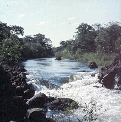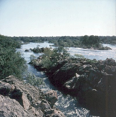 Die Popa-Stromschnellen im Okavango-Fluss bei Bagani, 1982