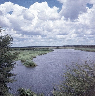 Der Okavango-Fluss bei Kaisosi, Januar 1979