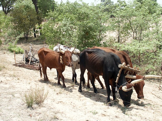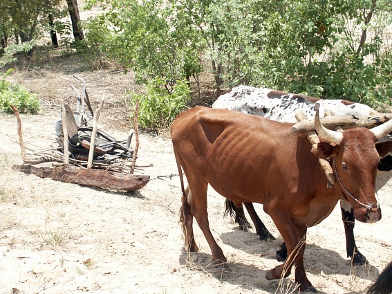 Ochsen gezogene Transport-Schlitten immer noch eine Rolle im örtlichen Verkehrswesen,
