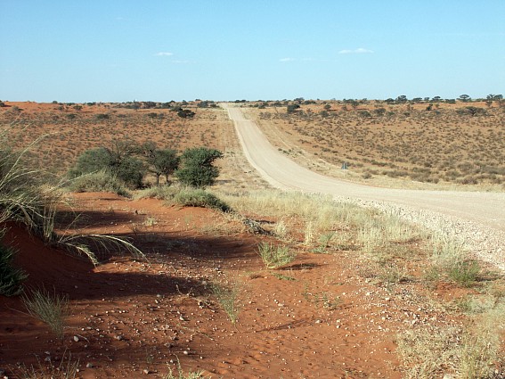 Kalahari Landschaft südlich von Koës: Distrikt Straße 611: