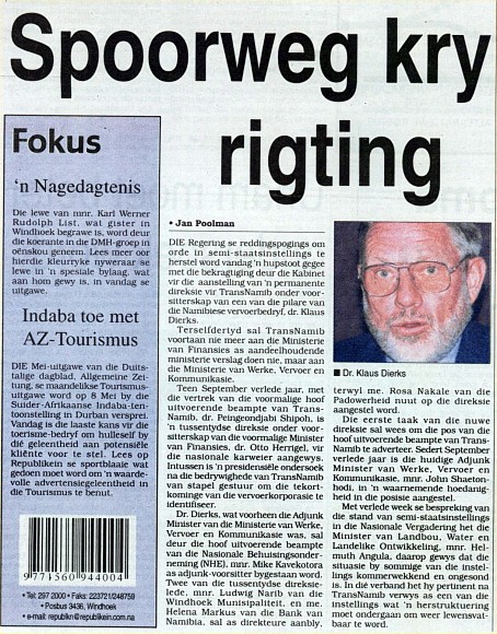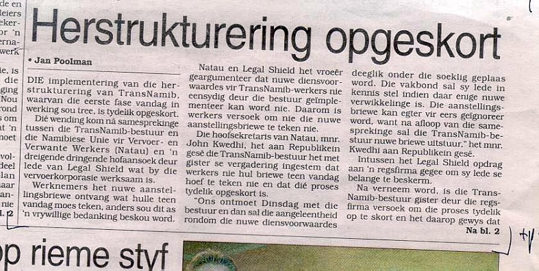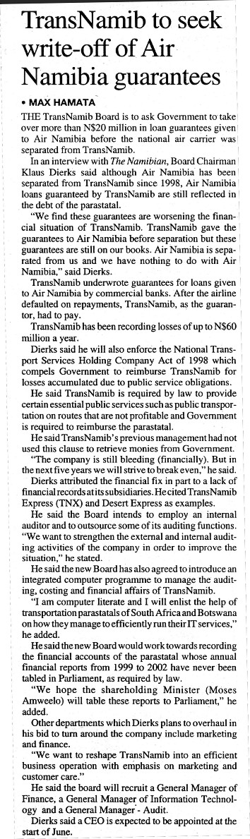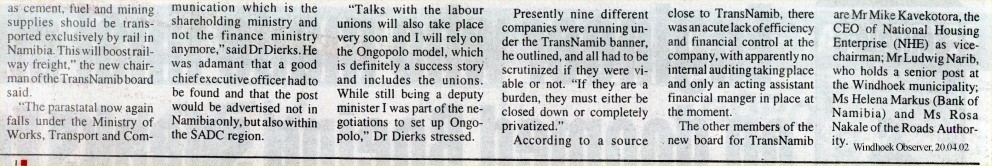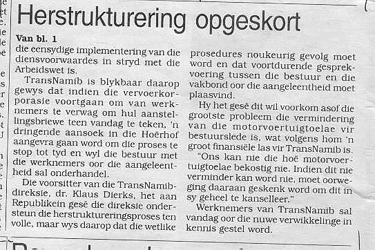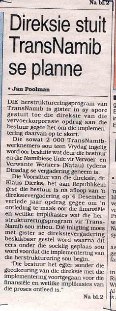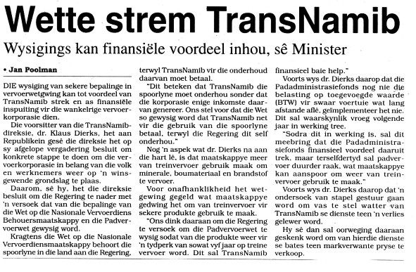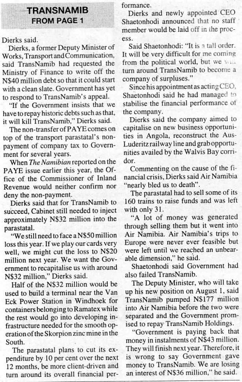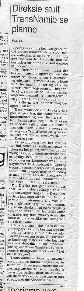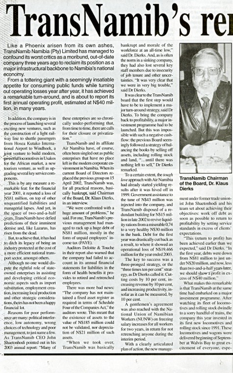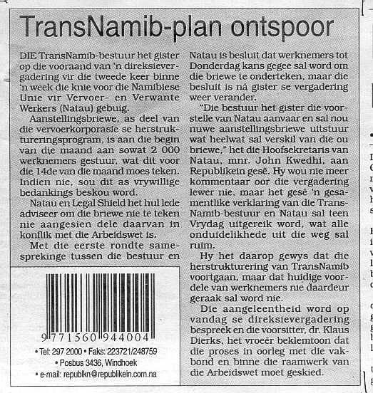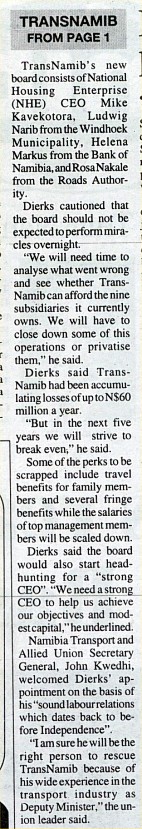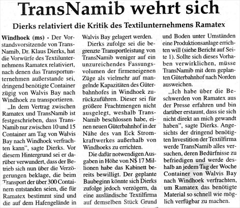 PRESS REFLECTIONS ON TRANSNAMIB'S
