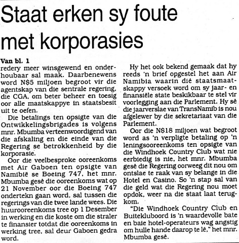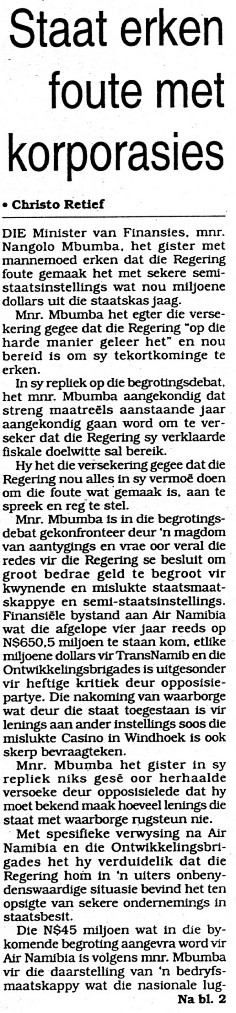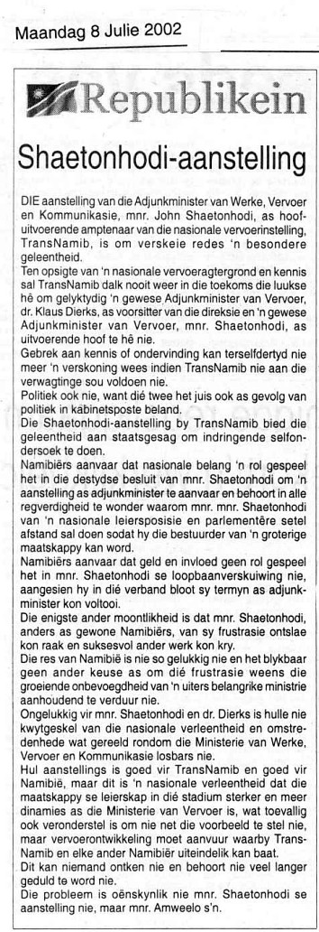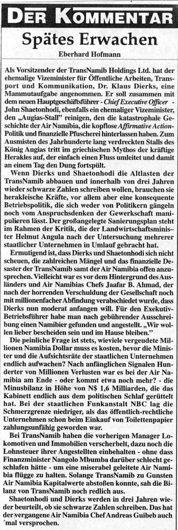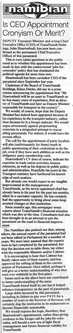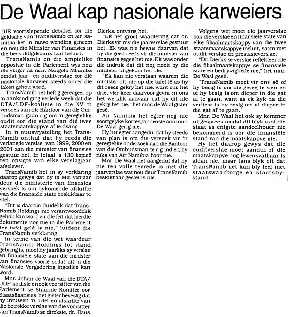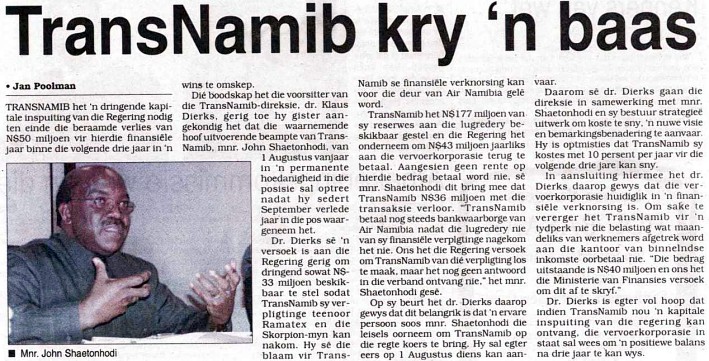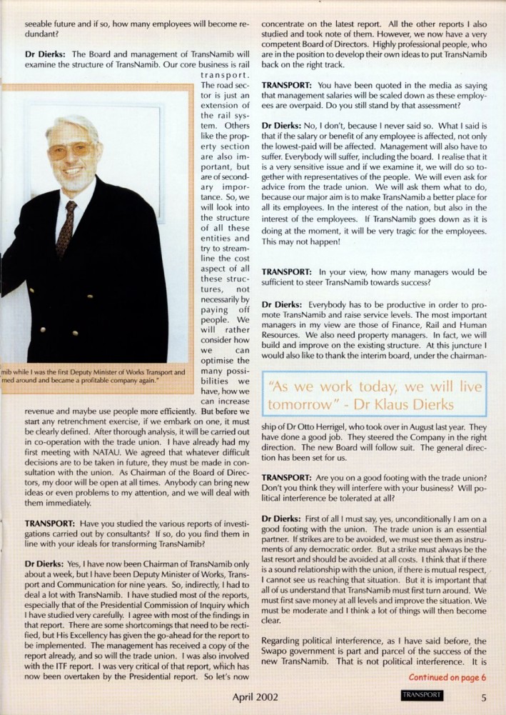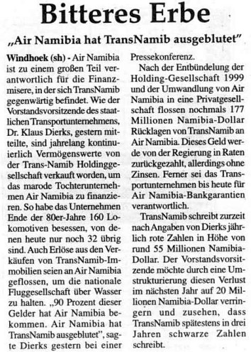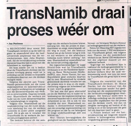PRESS REFLECTIONS ON TRANSNAMIB'S