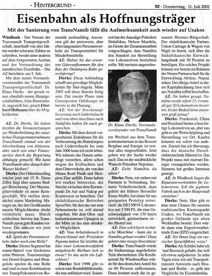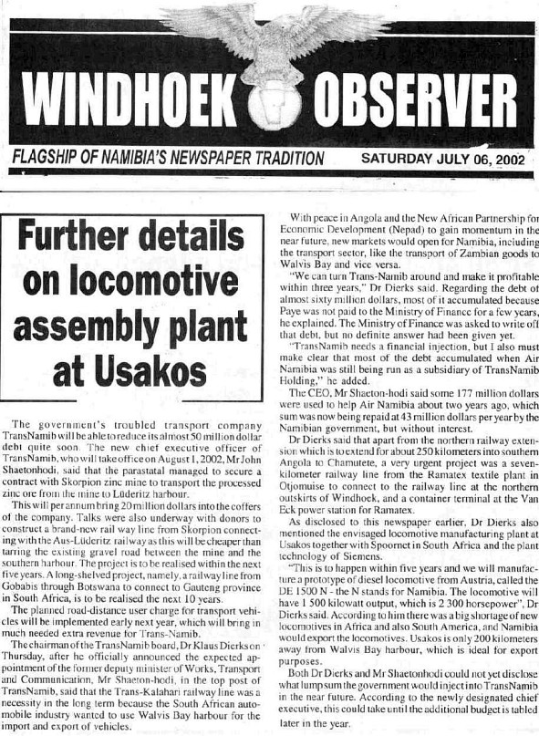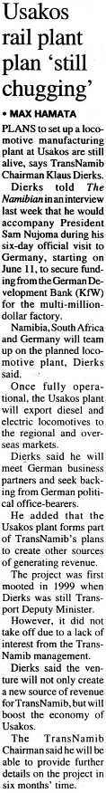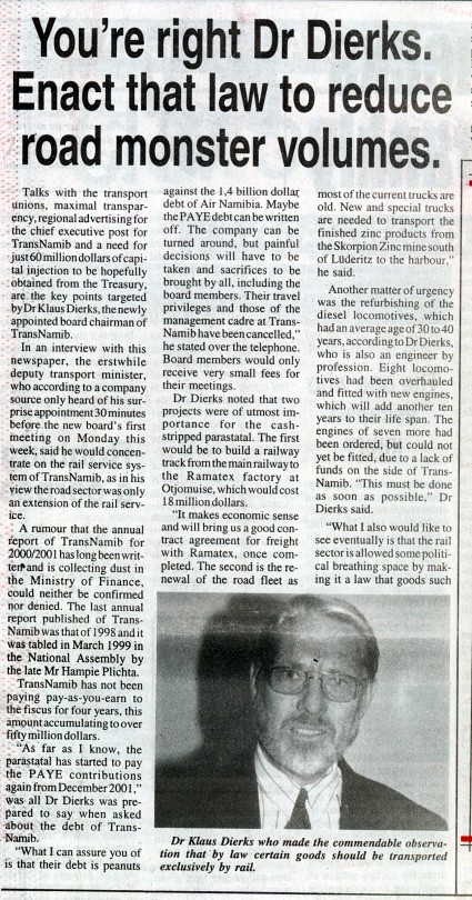 Similarly, the railways in Namibia are at the crossroads. Should it be allowed the railway