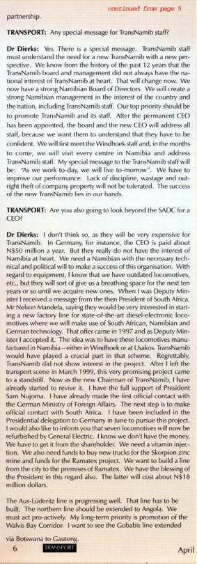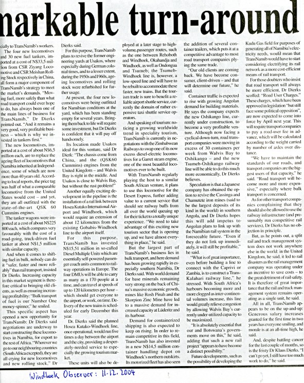 TO TRANSPORT NAMIBIA'S SUCCESS